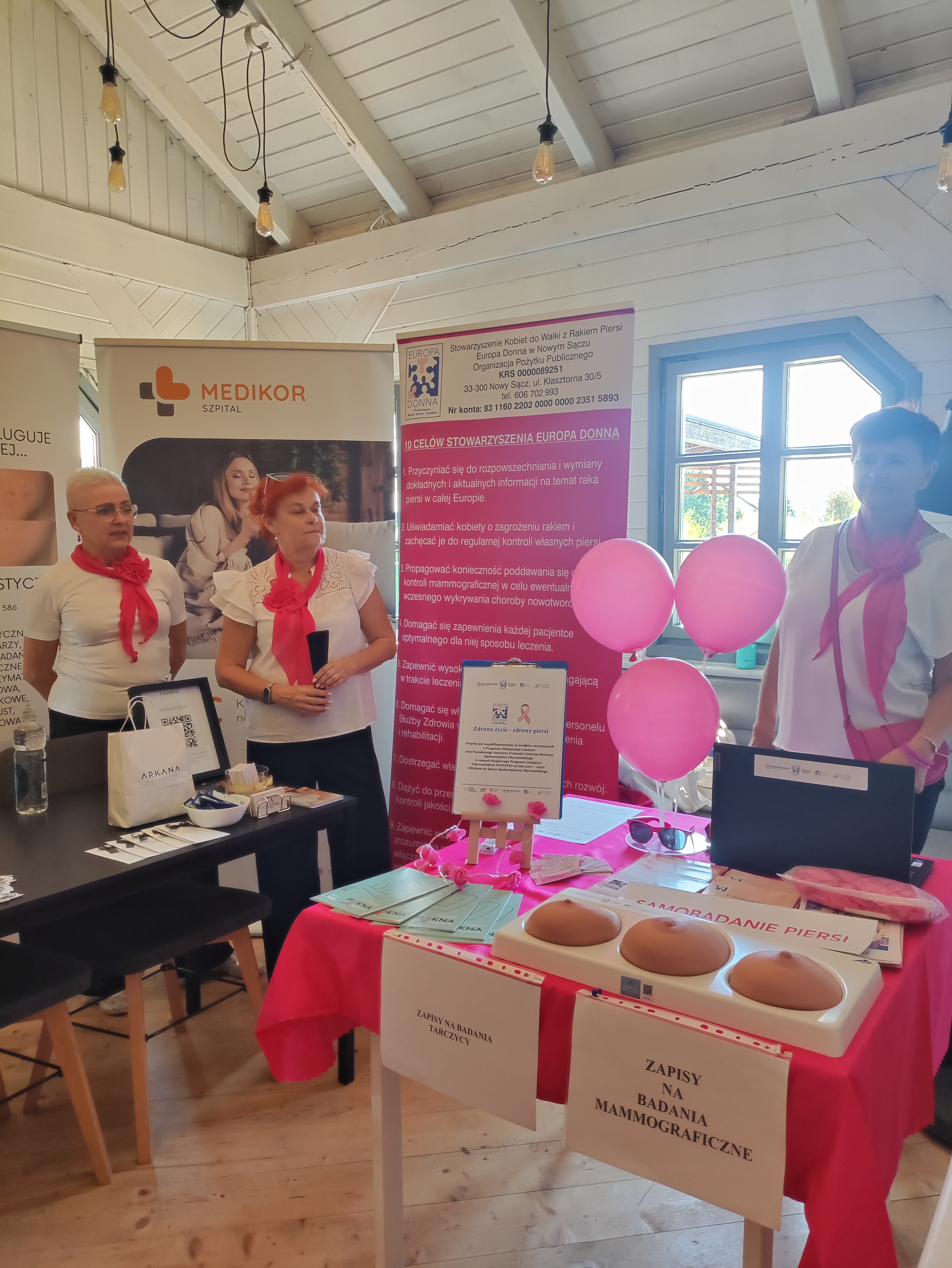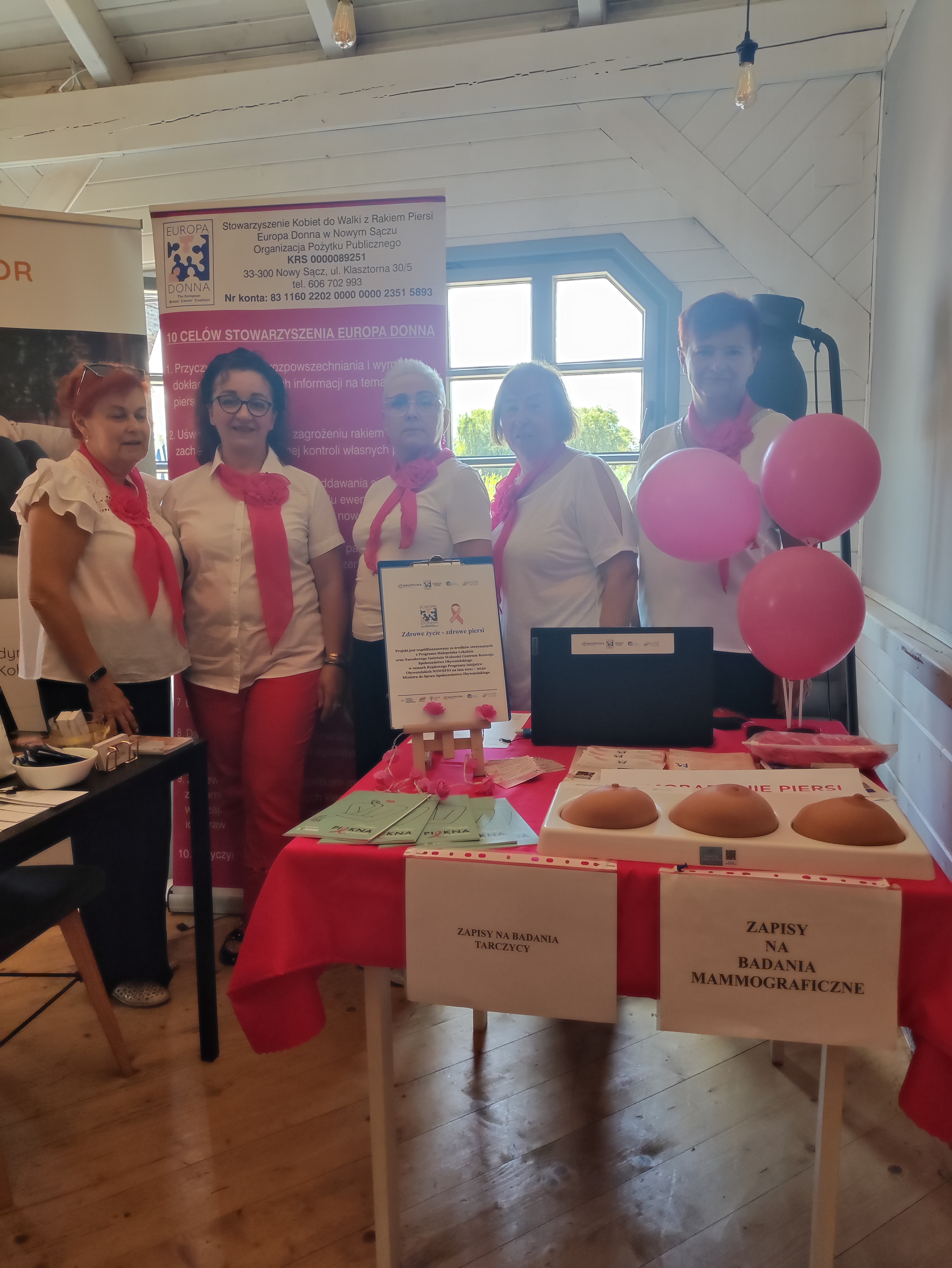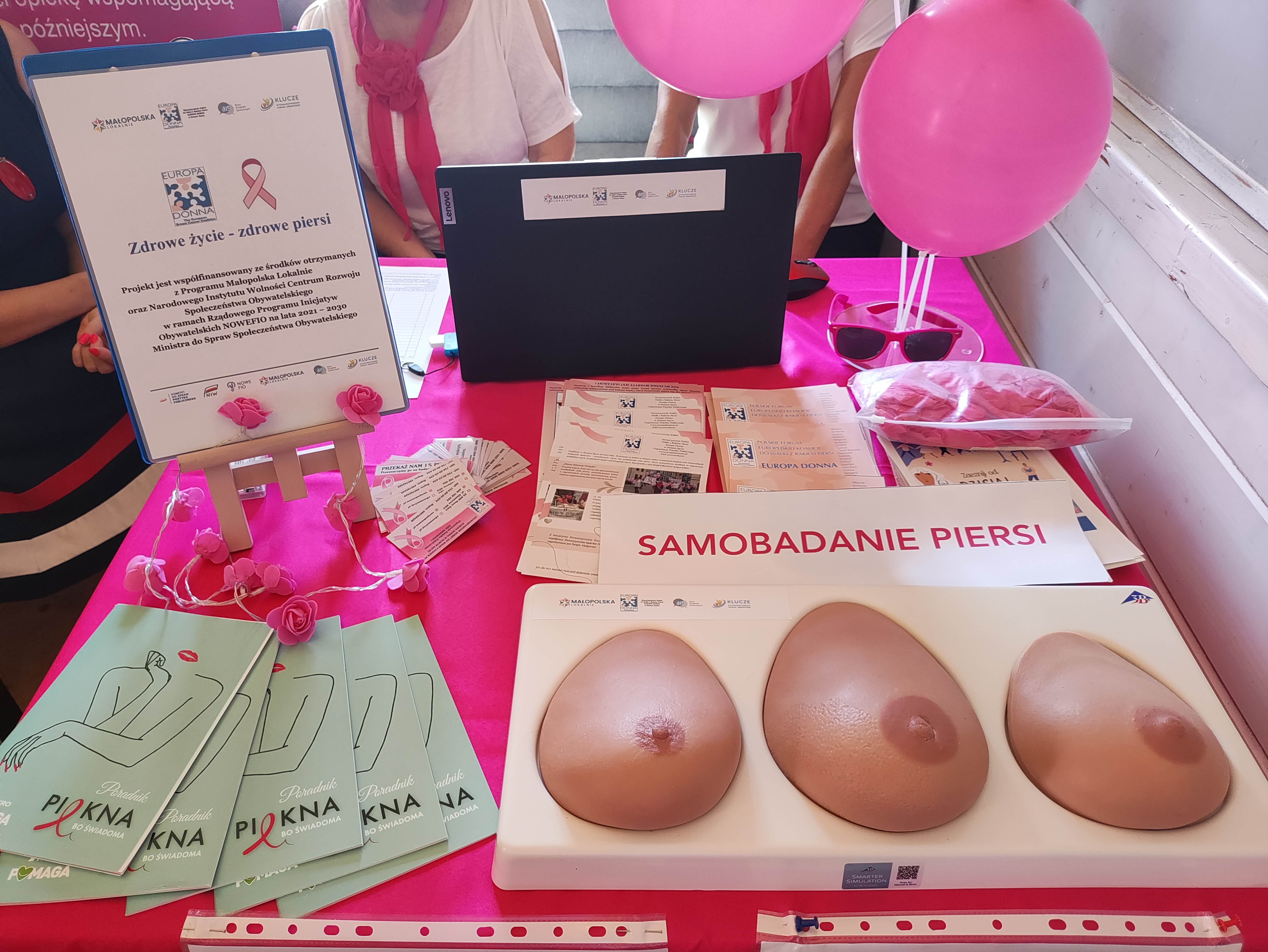 Bożena przy pomocy fantomów piersi przeprowadziła instruktaż samobadania. Panie mogły samodzielnie sprawdzić i wskazać nieprawidłowości w strukturze piersi. Na zakończenie otrzymały specjalistyczne broszury i ulotki oraz wypełniły anonimową ankietę na temat dotychczasowej znajomości przedstawionej tematyki.